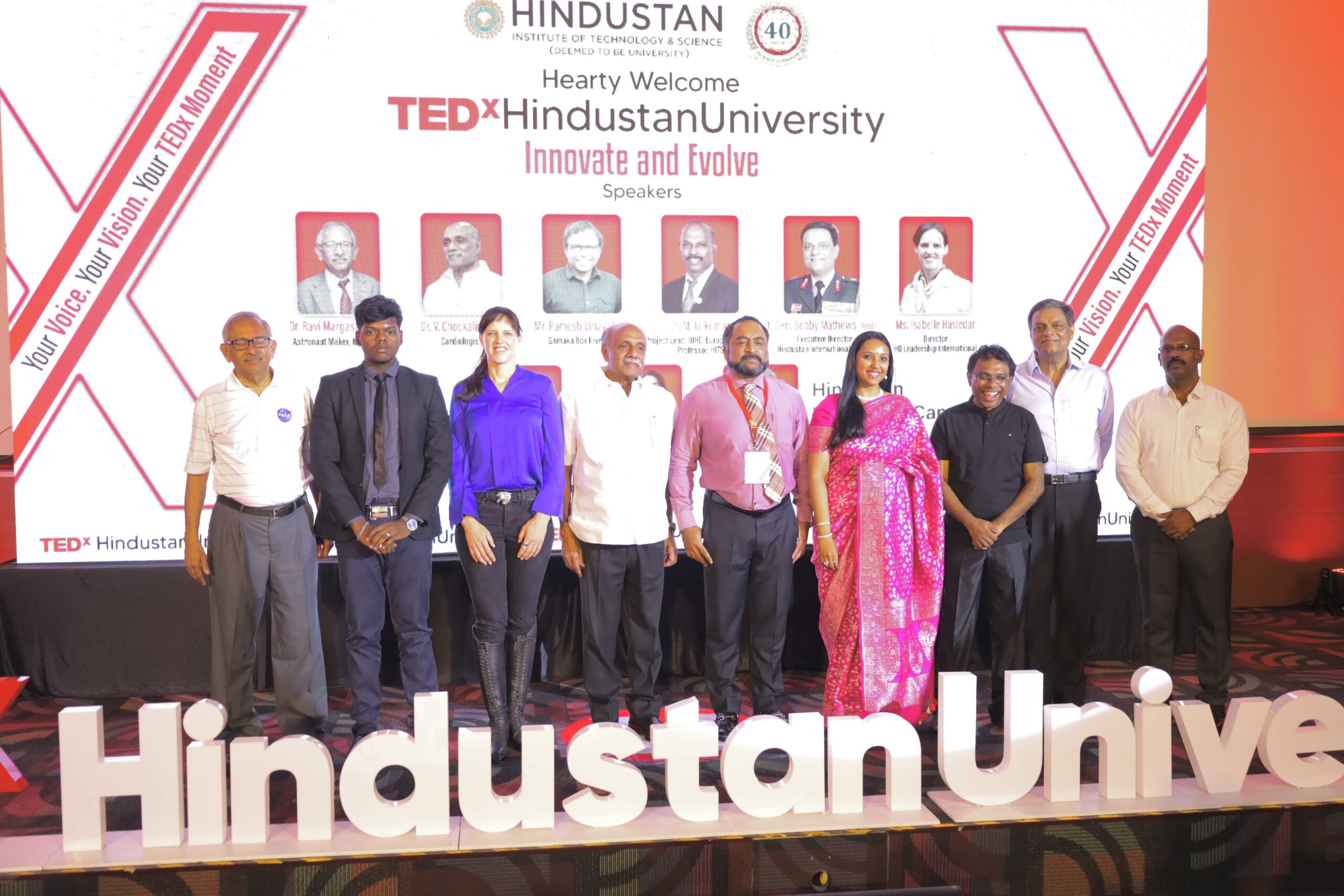 Chennai : TEDx Hindustan University concluded successfully, leaving over 500 attendees engaged and inspired after a day of thought-provoking ideas and meaningful insights. The event, themed, Innovate and Evolve, delivered on its promise to bring together nine remarkable individuals whose groundbreaking work spans from the cosmos to the operating room, from championship arenas to cutting-edge laboratories.