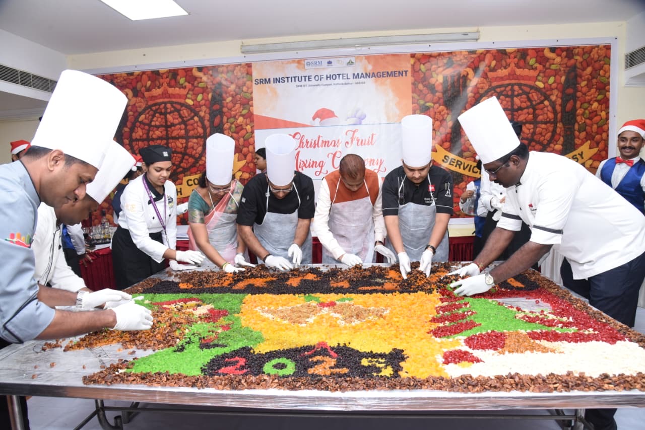The SRM Institute of Hotel Management (SRMIHM), SRMIST, celebrated its grand Christmas Fruit Mixing Ceremony on November 18, 2025, with great enthusiasm. The college has followed this tradition for over 25 years, marking yet another memorable chapter. The event was filled with festive cheer, vibrant energy, and the unmistakable spirit of togetherness.