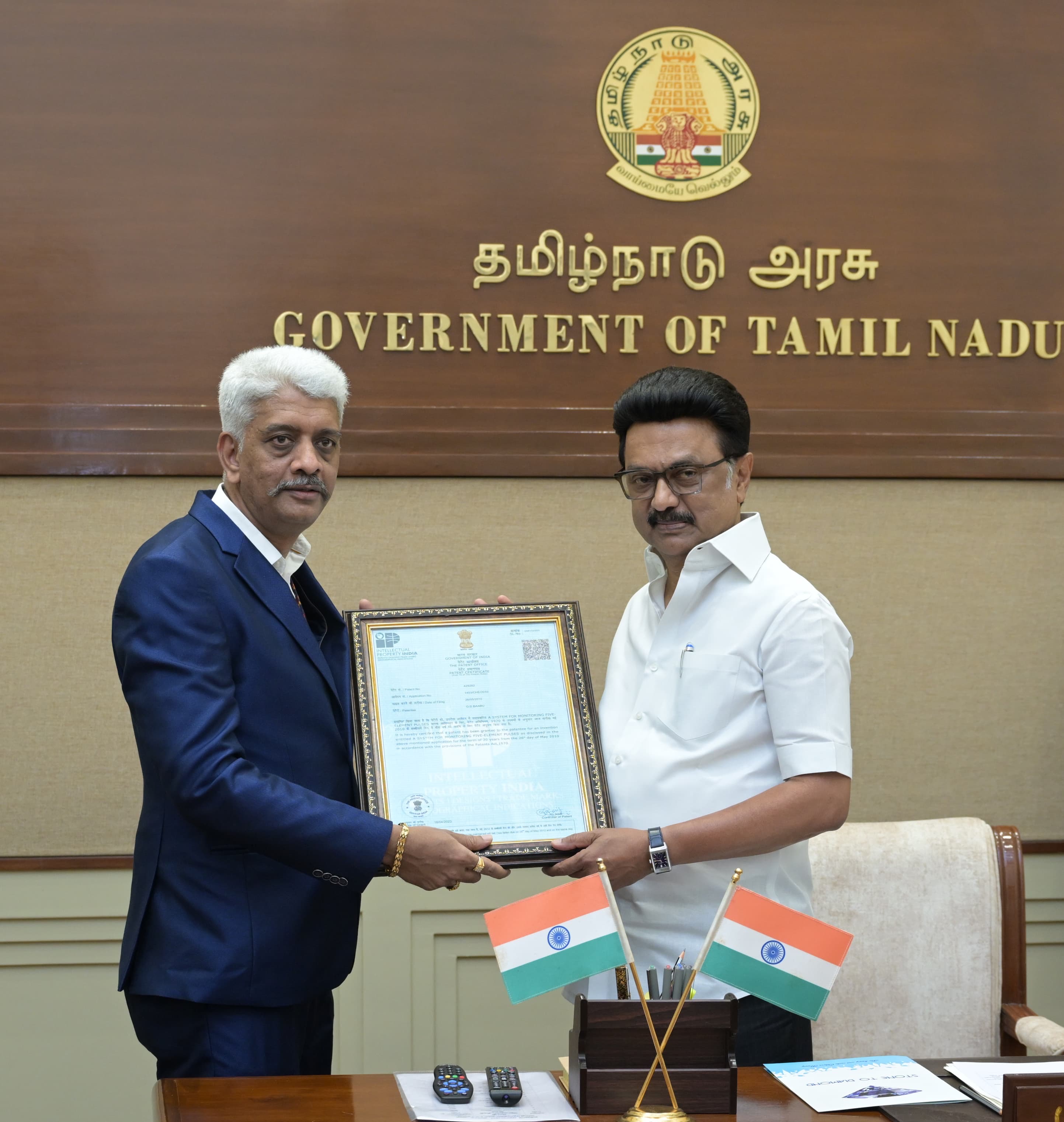 Tamilnadu Chief Minister of M. K. Stalin congratulates Prof. Dr. Aathi Jothi Babu for Patented Invention of Non- Medicine Treatment